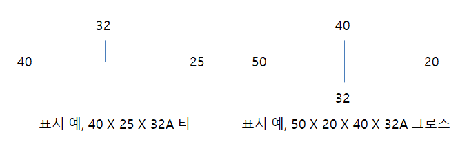 - 지름이 같은 경우에는 호칭지름으로 표시한다. (예, 25A 엘보우)